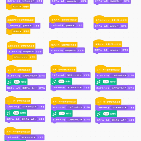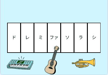 鍵盤と楽器を配置し、キーボードを押したら音が鳴る。 そして、奏でる音は3種類切り替えることができる教本です。